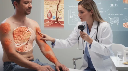 Le pityriasis rubra pilaire représente l’une des dermatoses les plus énigmatiques de la pratique dermatologique moderne. Cette affection chronique, caractérisée par une triade sémiologique distinctive, affecte moins d’une personne sur 50 000, rendant son diagnostic particulièrement challengeant pour les praticiens….