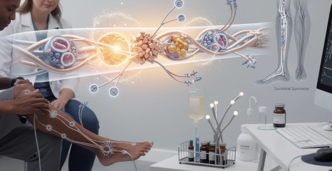 Les AGEs se lient aux protéines structurales et modifient leurs fonctions, un peu comme une « caramélisation » lente des tissus nerveux. Parallèlement, l’hyperglycémie active des voies métaboliques délétères (voie des polyols, activation de la protéine kinase C) qui perturbent l’homéostasie cellulaire. Le résultat ? Une souffrance axonale chronique, se traduisant par une polyneuropathie sensitivomotrice distale, souvent douloureuse.
