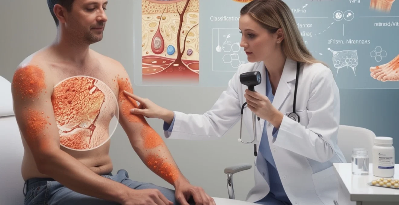La surveillance dermatologique à long terme vise plusieurs objectifs : évaluer le contrôle des symptômes, adapter la stratégie thérapeutique, dépister les effets indésirables des traitements systémiques et accompagner le patient dans la gestion de sa qualité de vie. Un suivi tous les 3 à 6 mois est généralement recommandé pour les patients sous rétinoïdes, méthotrexate ou biothérapies, avec un bilan biologique régulier. En dehors des phases actives, une consultation annuelle peut suffire, à condition que le patient soit bien informé des signes d’alerte justifiant une réévaluation rapide (aggravation soudaine, fièvre, signes de surinfection).